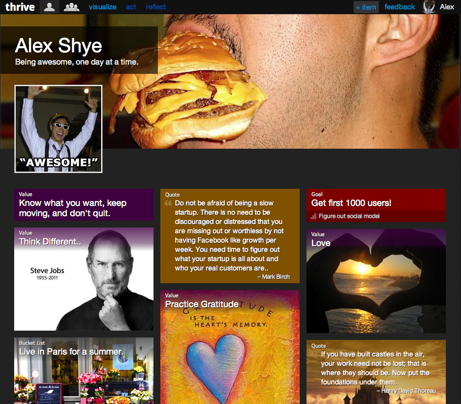 He had liked the idea of Thrive, but wanted to simplify it to just a single board. This seemed like a good idea. If you go to Pinterest and search for ‘vision board’, you will see tons of them. Clearly, there was a vertical here to go after!